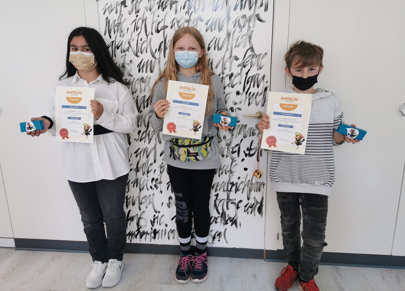 Am 06. Mai fand im Büro der Schulleiterin Frau Häusler die Siegerehrung für die Teilnehmer*innen am Leseclub im Schuljahr 2021/22 statt. 12 Schüler*innen aus den Klassenstufen 5 und 6 haben innerhalb von 5 Monaten insgesamt 37 Bücher gelesen und die Antolin-Quizfragen dazu beantwortet. Zum Abschluss des diesjährigen Leseclubs erhielten alle Teilnehmer*innen von der Abteilungsleiterin Frau Telser eine Urkunde, für die 3 erfolgreichsten Leseratten gab es zusätzlich ein kleines Präsent.
