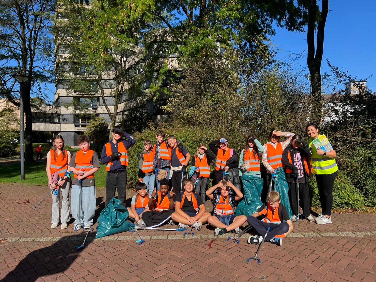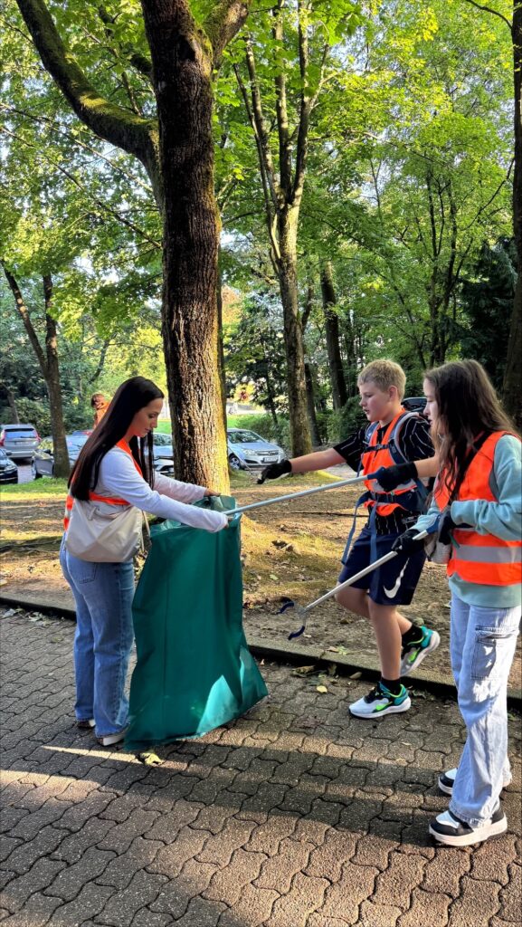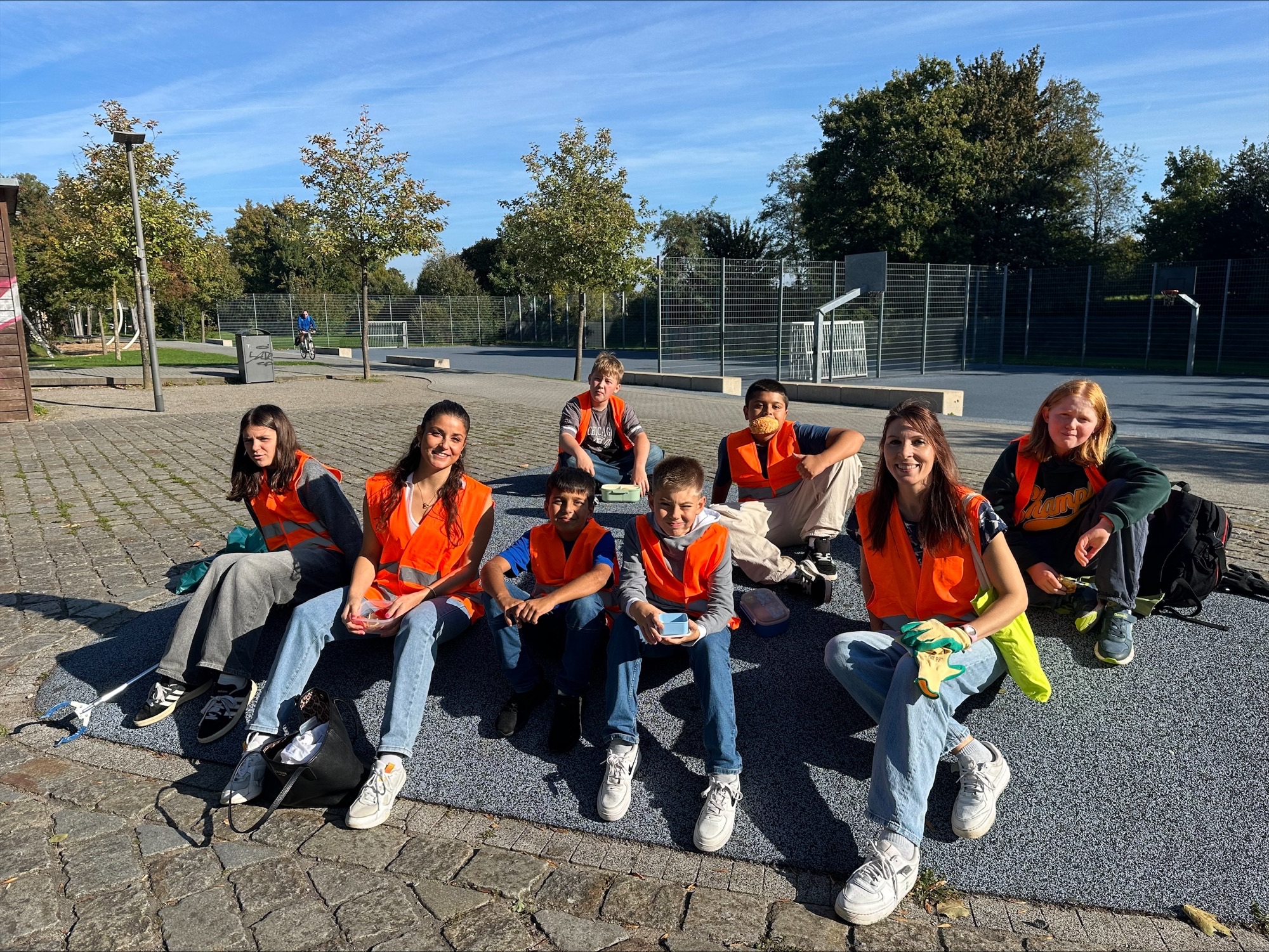 Am heutigen Freitag, dem 19.09.2025 haben 60 Schülerinnen und Schüler der Klassen 5F und 6A an ausgewählten Stellen zur Sauberkeit in unserer Stadt beigetragen. Mit tatkräftigem Einsatz sammelten sie Müll auf, den sie anschließend sortierten. Die Aktion fand bei vielen Velbertern, die wir unterwegs trafen, sehr großen Anklang, viele freundliche Worte und Blicke begleiteten unseren Weg. Ermöglicht wurde diese Aktion durch eine in diesem Jahr erstmalige Kooperation zwischen der GVM und der L & M-Gruppe aus Velbert, die für die Ausstattung und Versorgung verantwortlich zeichnete. Auch die lokalen Medien, sowohl die WAZ als auch der WDR, begleiteten die Aktion mit ihrer Berichterstattung. Im Anschluss erfolgte eine Preisverleihung in der Aula, in der alle Verantwortlichen das großartige Engagement unserer Schülerinnen und Schüler würdigten. Eine besonders schöne Überraschung war in diesem Rahmen die großzügige Spende der L & M-Gruppe über 500 € an die Schule, mit der unsere Vision einer nachhaltigen Schule gefördert werden soll. Vielen Dank noch einmal auch an dieser Stelle!