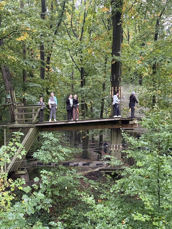 Heute besuchte die Klasse 6F den Waldkletterpark in Velbert Langenberg und stellte dort Mut, Geschick und Teamgeist unter Beweis. Gemeinsam wurden Grenzen getestet und neue Höhen erklommen – ein Tag voller Abenteuer und Zusammenhalt!