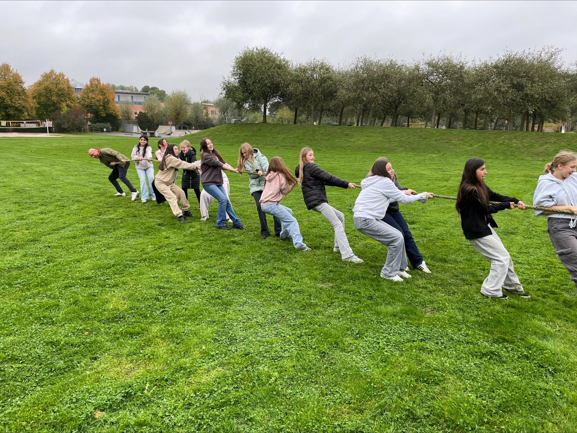 Die Klasse 5c wuchs heute mit ihren Klassenlehrerinnen Frau Egger und Frau Zimmermann und ihrem Englischlehrer Herr Banzer als Gemeinschaft ein Stückchen näher zusammen. Die Schüler*innen lernten sich besser kennen und stärkten ihren Teamgeist in Teambuildingübungen.