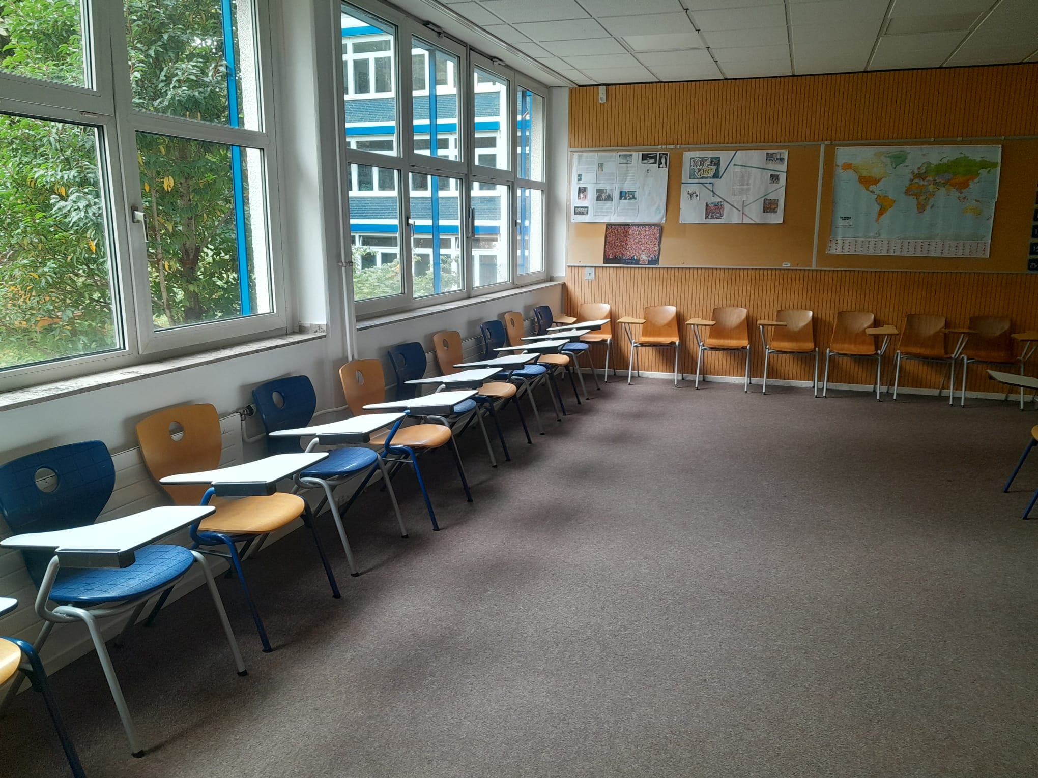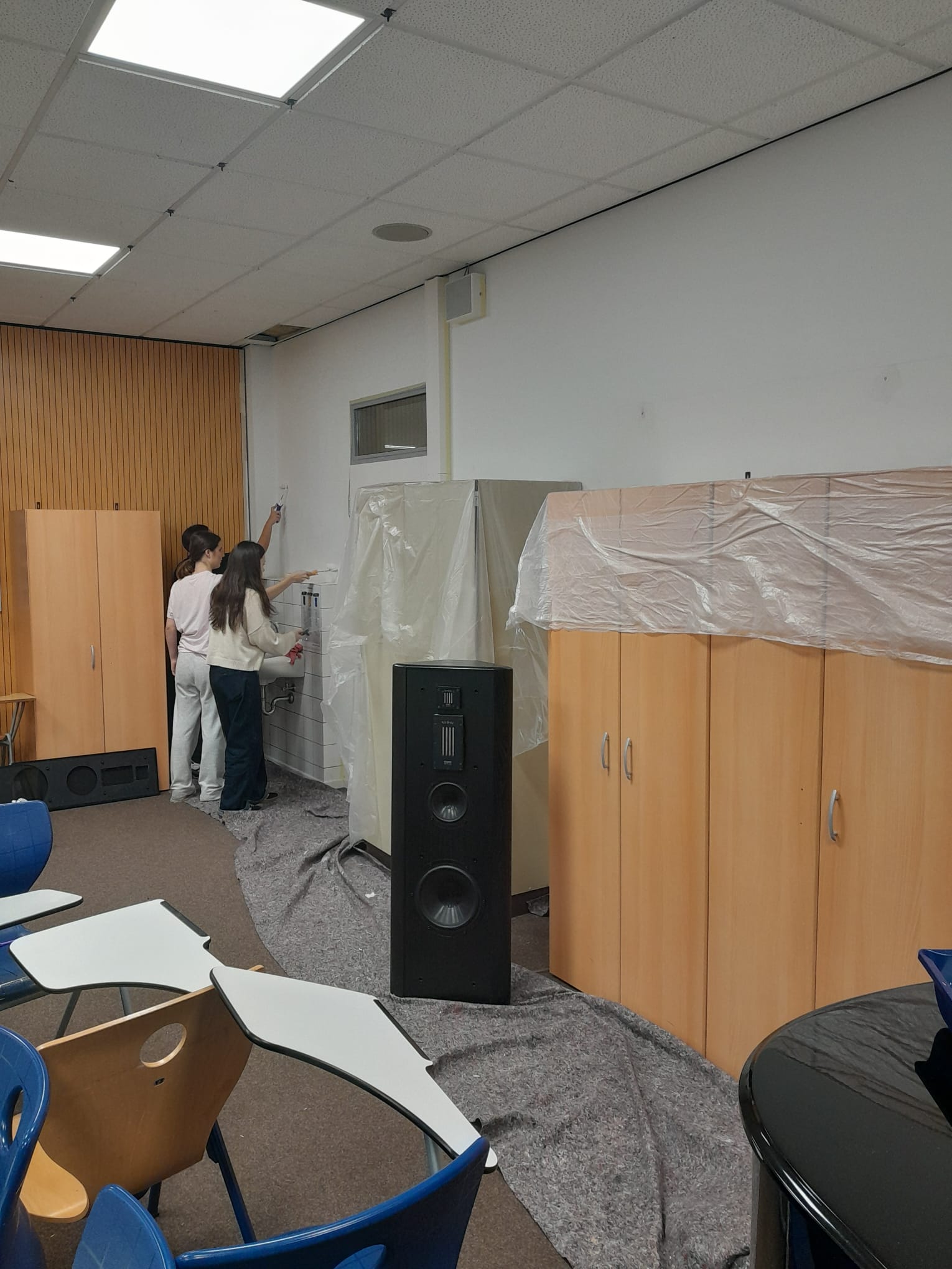 Ganz im Sinne unseres Schulmottos „Hand in Hand“ hat die Fachschaft Musik zur Verschönerung der beiden Musikräume MU 2 und 3 aufgerufen. Mit Hilfe motivierter Schülerinnen und Schüler, sowie Kolleginnen und Kollegen wurde abgeklebt, gespachtelt, geschliffen, gestrichen, geputzt und gesaugt. Jetzt strahlen die Räume wieder in weiß und nach den Herbstferien kann in freundlicher Athmosphäre wieder gelernt und musiziert werden. Ein herzliches Dankeschön geht an alle fleißigen Helfer und an unser Hausmeisterteam, das die Pinnwände sowie Handygarage ab- und anmontiert hat und bei Materialbedarf stets zur Stelle war.