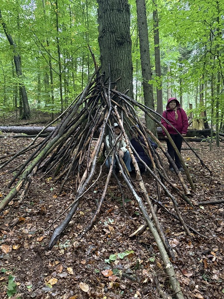 Gestartet ist die Projektwoche der Klasse 6F mit einer Wanderung im Langenhorster Wald. Trotz des regnerischen Wetters hatten die Schüler und Schülerinnen vor allem beim Bau eines Tippis und dem Kreieren von Landart jede Menge Spaß.