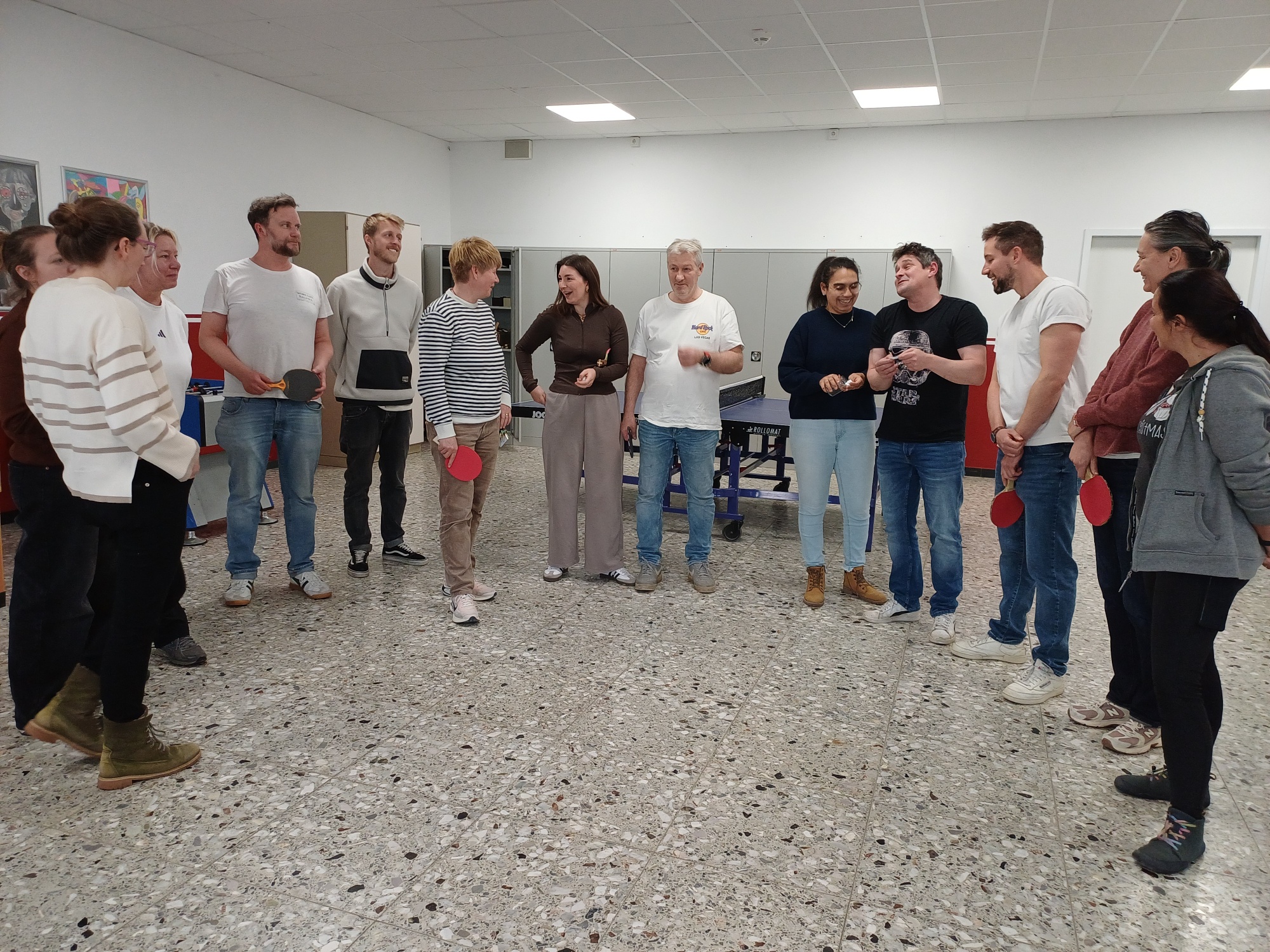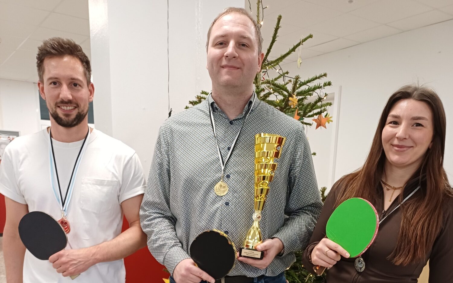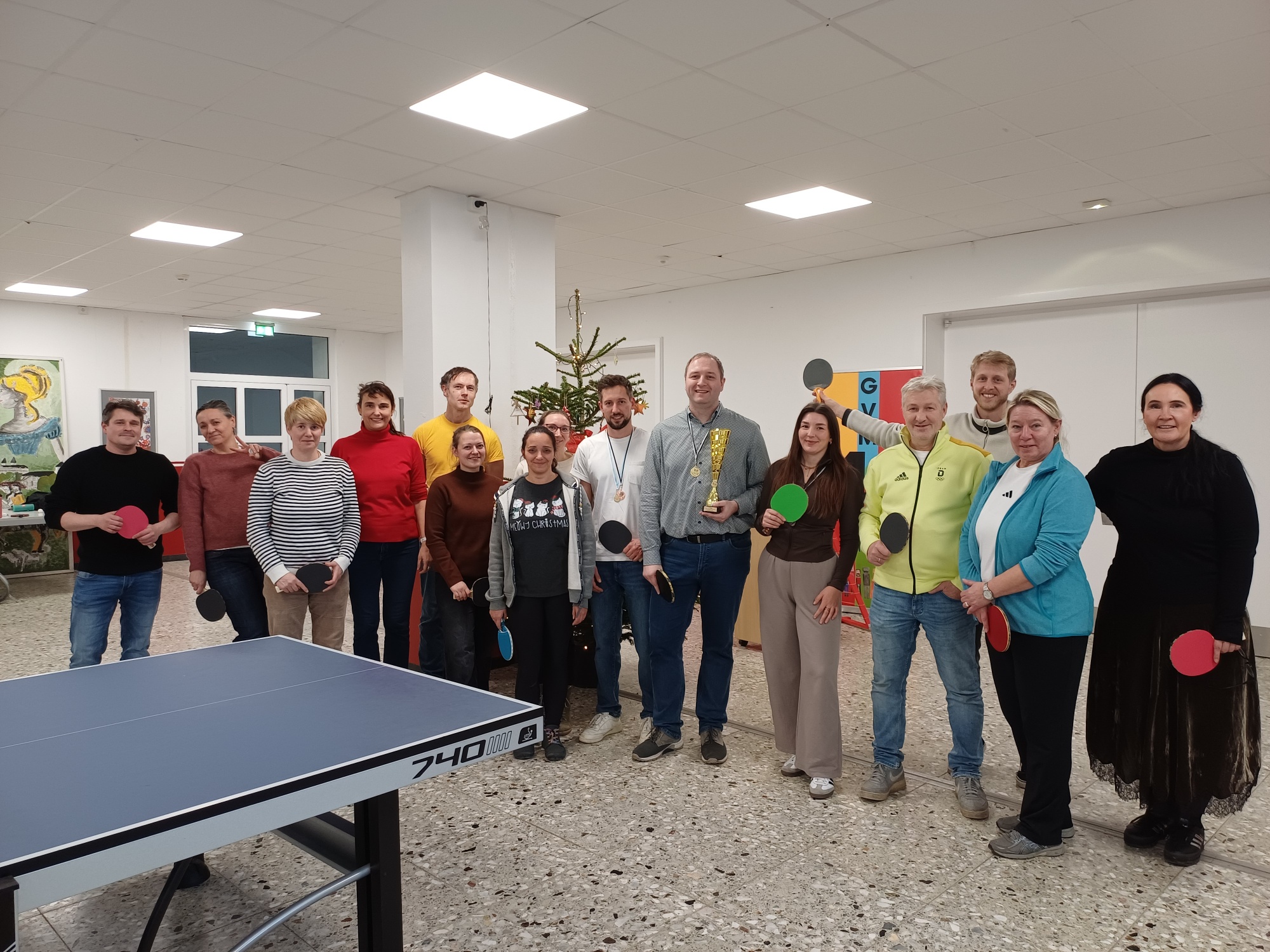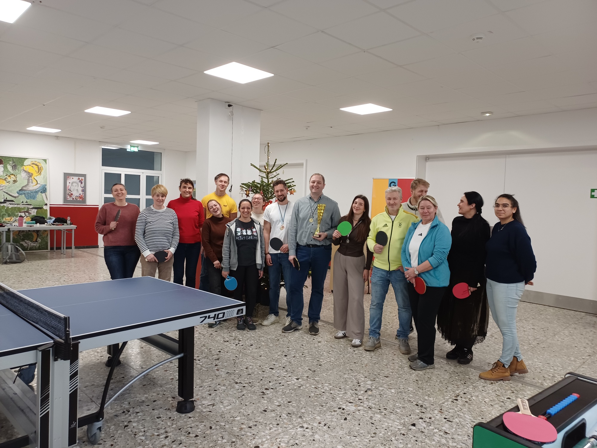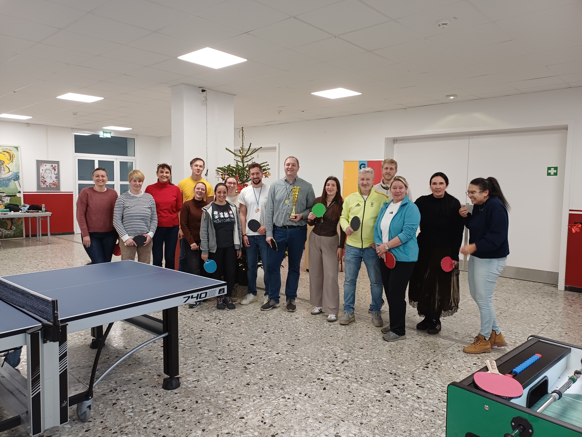 In einer schönen vorweihnachtlichen Tradition trafen sich alle Tischtennis-begeisterten-Kolleg*innen am Dienstag, 16.12.2025, um im Einzel- und Teamturnier zunächst miteinander, später dann aber gegeneinander anzutreten.
