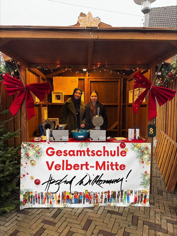 Liebe Eltern, liebe Schüler*innen, liebe Gäste, wir danken allen Besucher*innen sehr herzlich, die wir auch in diesem Jahr wieder zahlreich an unserer Weihnachtsbude auf dem Velberter Weihnachtsmarkt begrüßen durften.