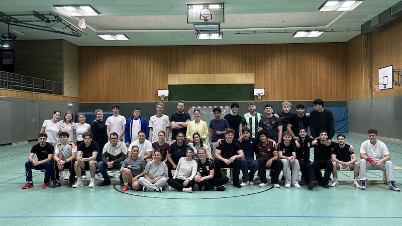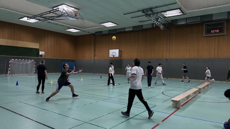 Der Turniertag begann mit einem spannenden Völkerballturnier, bei dem sich die Teams (Q1, Q2 , Ehemalige und Lehrer*innen) in abwechslungsreichen und mitreißenden Spielen maßen. Nach der Hin- und Rückrunde setzte sich die Q2 am Ende durch und durfte sich über den verdienten Sieg freuen.