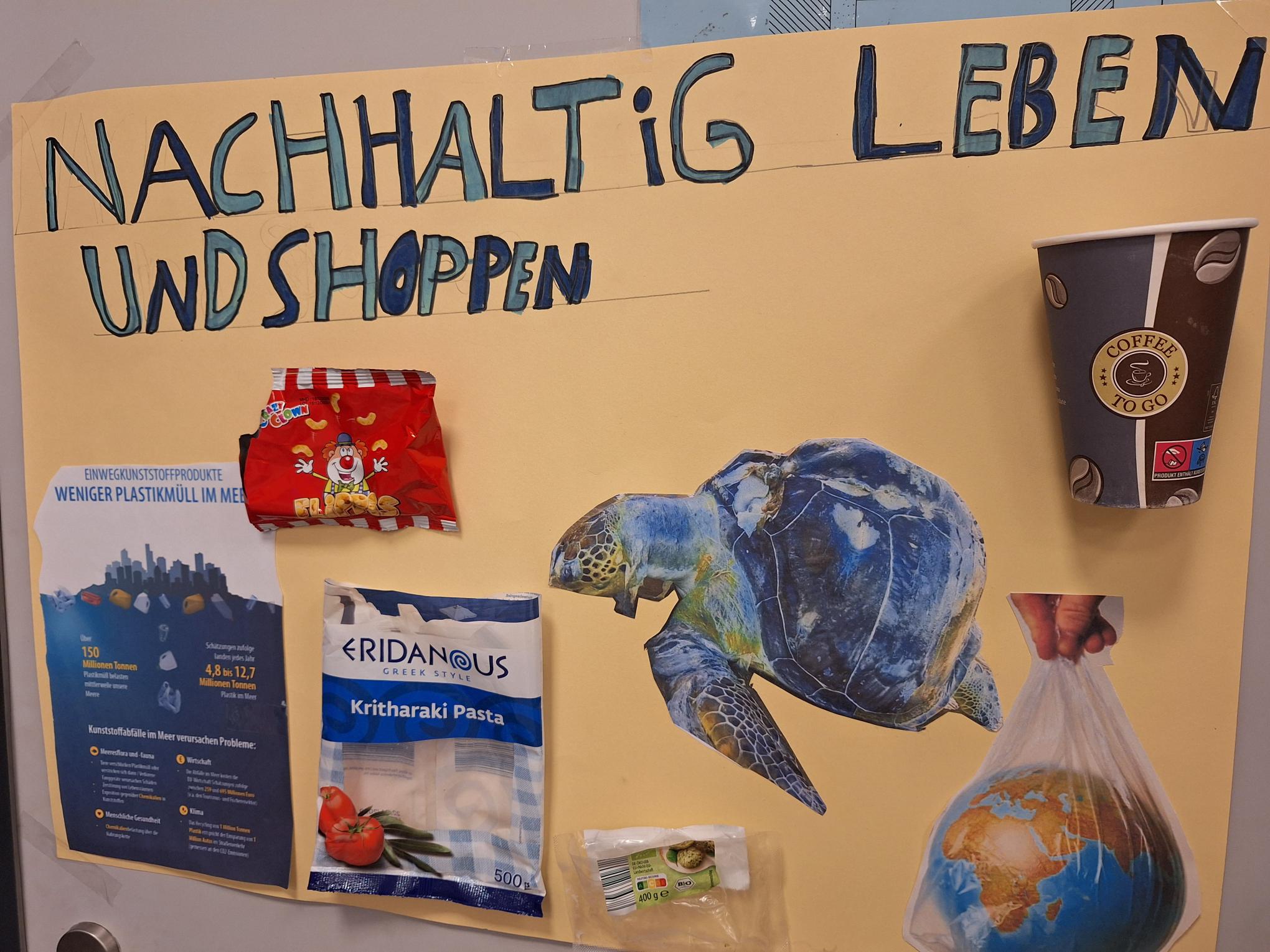 Nachhaltig shoppen in Velbert, aber wie? von Frau Schwedhelm: Im Rahmen Projekts „Nachhaltig shoppen in Velbert – aber wie?“ haben sich unsere Schülerinnen und Schüler intensiv mit dem Thema Nachhaltigkeit auseinandergesetzt. Ein besonderer Schwerpunkt lag dabei auf dem Problem des Plastikmülls in den Weltmeeren und den weitreichenden Folgen für Umwelt und Tiere.